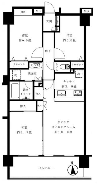 | 専有面積 | 66㎡ | 建物構造 | RC |